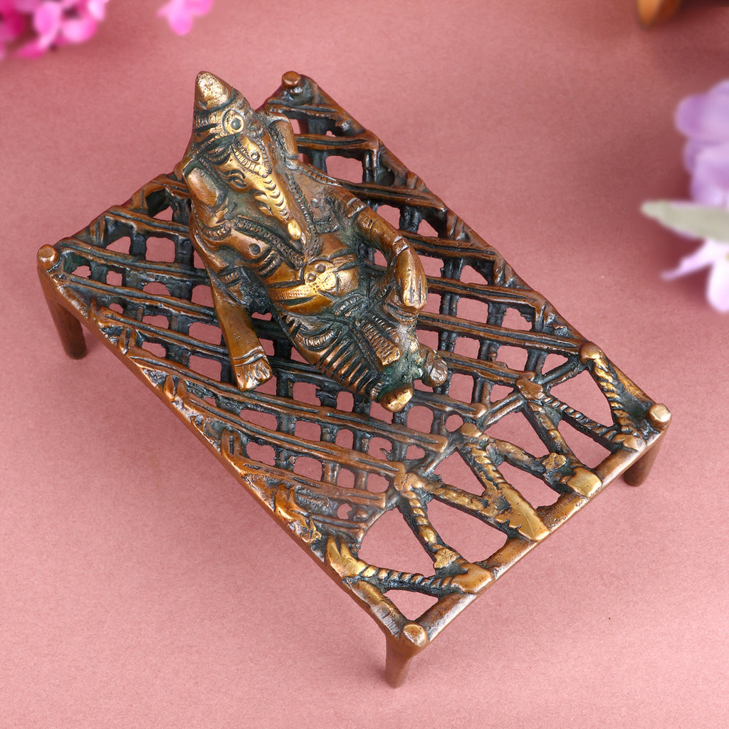 Puja Room Decor | Antique Finish Brass Charpoy | Handmade Brass Charpoy | Ganesha Relaxing On Charpoy | Exclusive Ganesha Relaxing on Charpoy | Brass Charpoy |