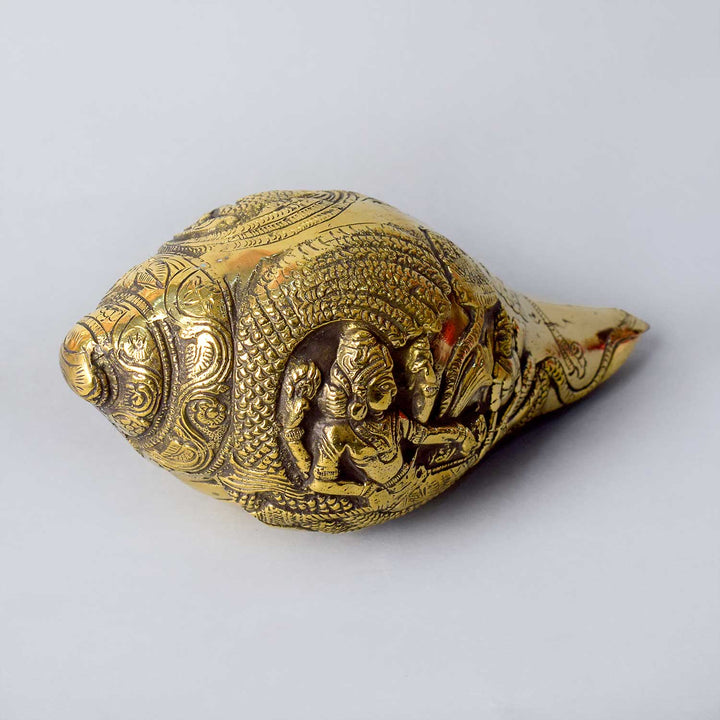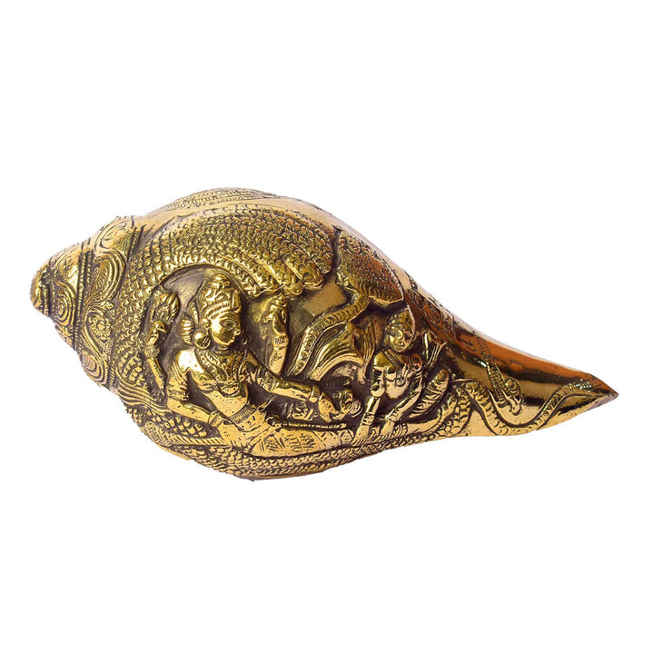 Brass Engraved Shankh | Brass Shankh for Puja | Handcrafted Brass Shankh | Shankh for Home Temple | Antique Finish Brass Shankh | Brass Shankh | Brass Gift Item for Housewarming | Puja Room Decor |