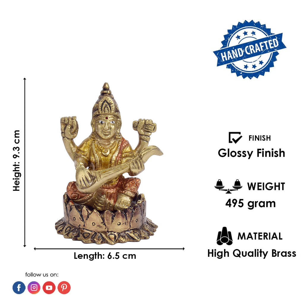 • Material: The SaraswatiΒ Mata Murti is made from High-Quality Brass Material