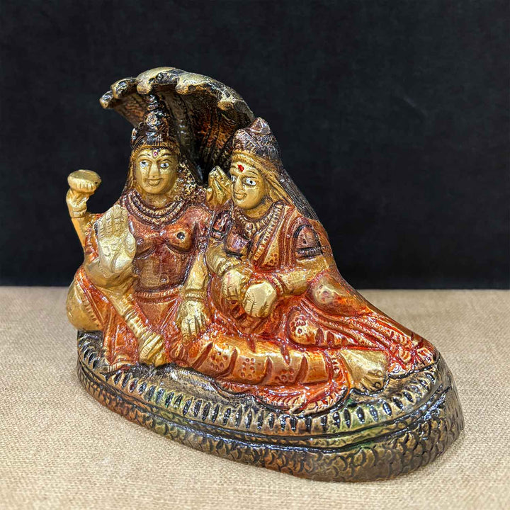 Brass Vishnu Lakshmi Idol | Handcrafted Vishnu Laxmi Idol | Lakshmi Narayan Brass Idol | Brass Idol | Brass Gift Item for Housewarming | Premium Brass Idols for Sale | Puja Room Decor | Brass Vishnu Laxmi Seated on Sheshnag |Β