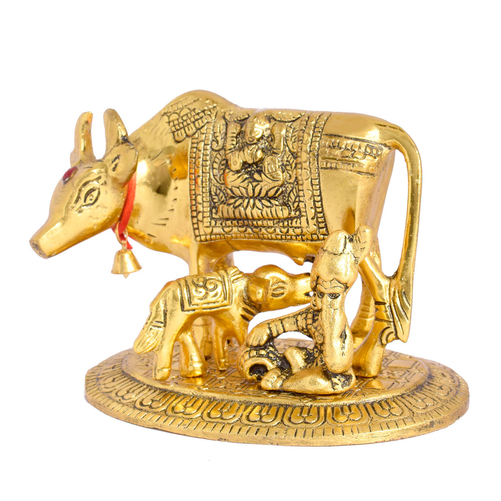 Buy Online | Brass Kamdhenu Cow Idol with Laddu Gopal | Satvikstore.in – satvikstore.in