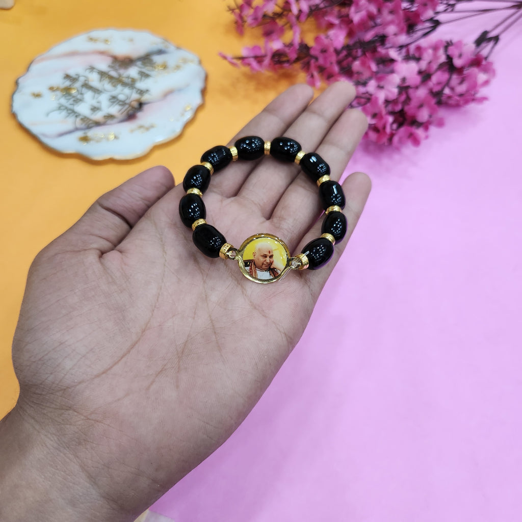 Buy Black Oval Pearl Bracelet with Guruji Swaroop | Satvikstore.in – satvikstore.in