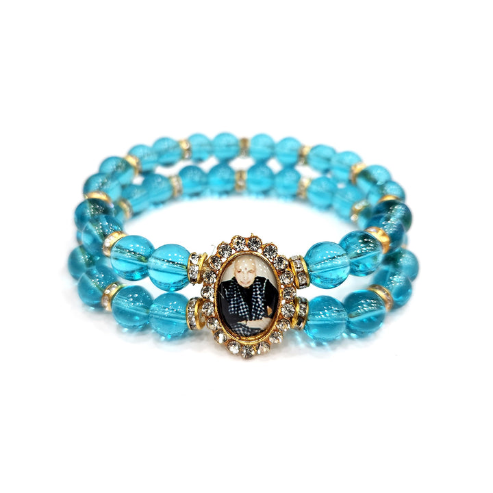 Blue Round Pearl Bracelet with Jai Guruji Swaroop Handmade Bracelets for Men and Women