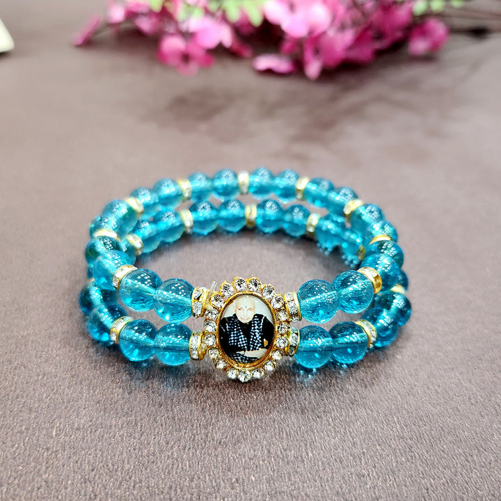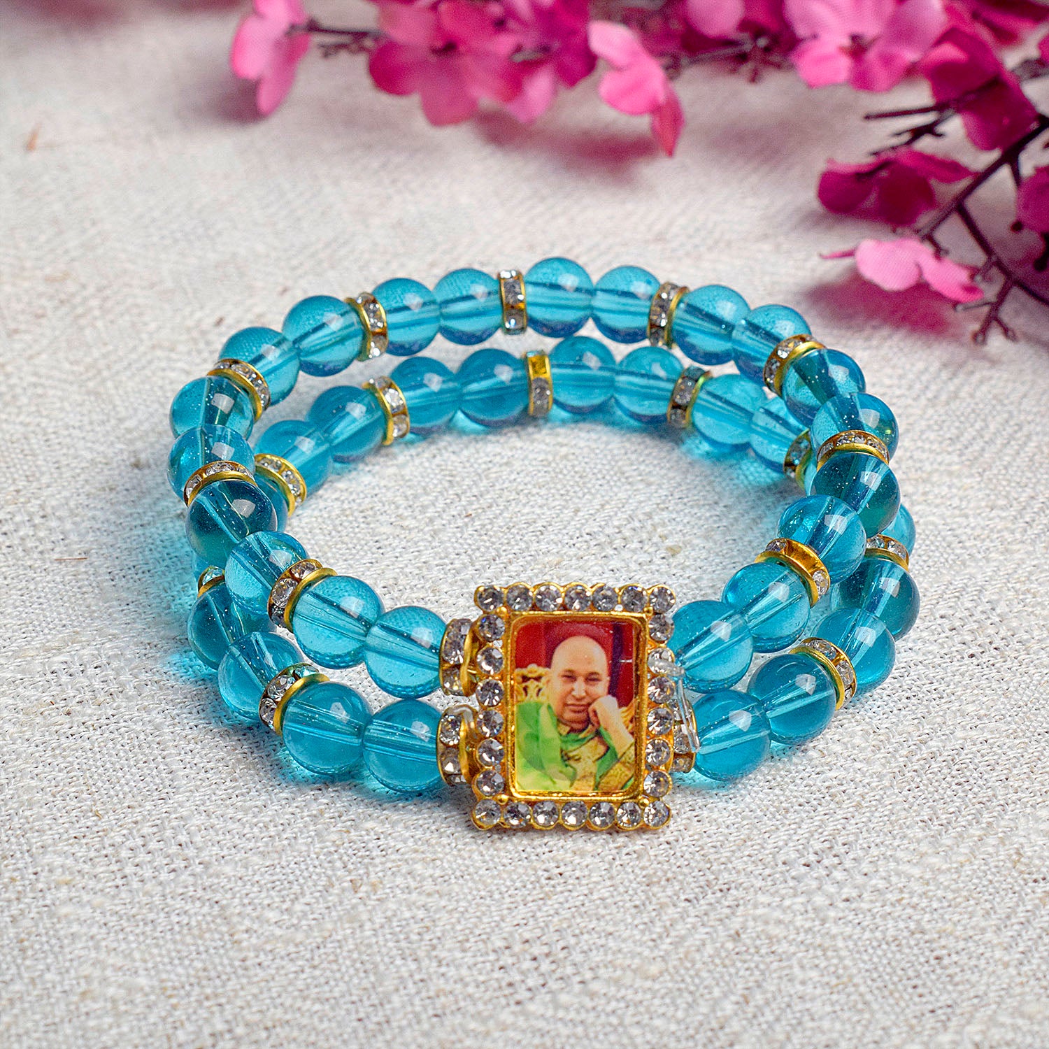 • Item Name:  Blue Round Pearl Bracelet with Jai Guruji Swaroop Handmade Bracelets for Men and Women