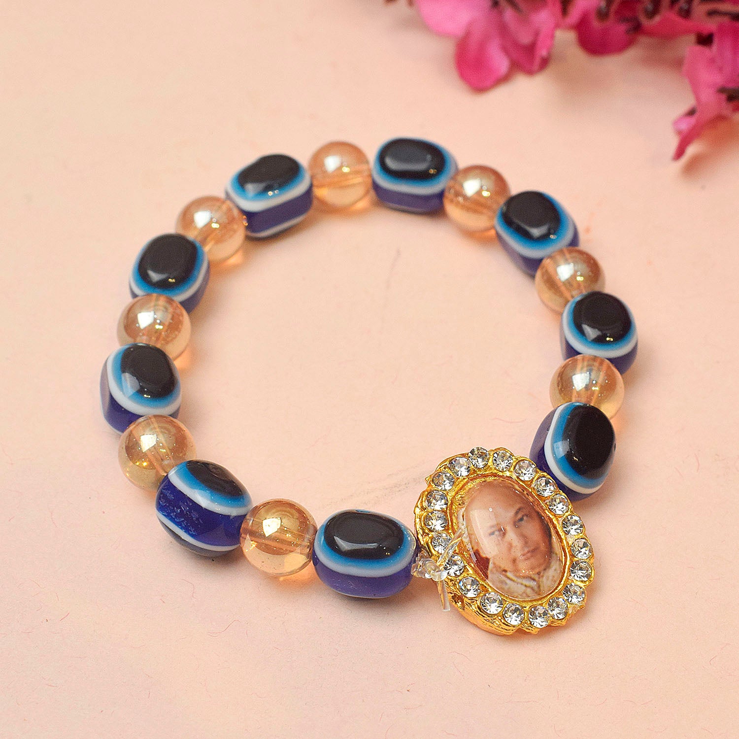 • Item Name: Brown Beads Evil Eye Pearl Bracelet with Jai Guruji Swaroop Handmade Bracelets for Men and Women