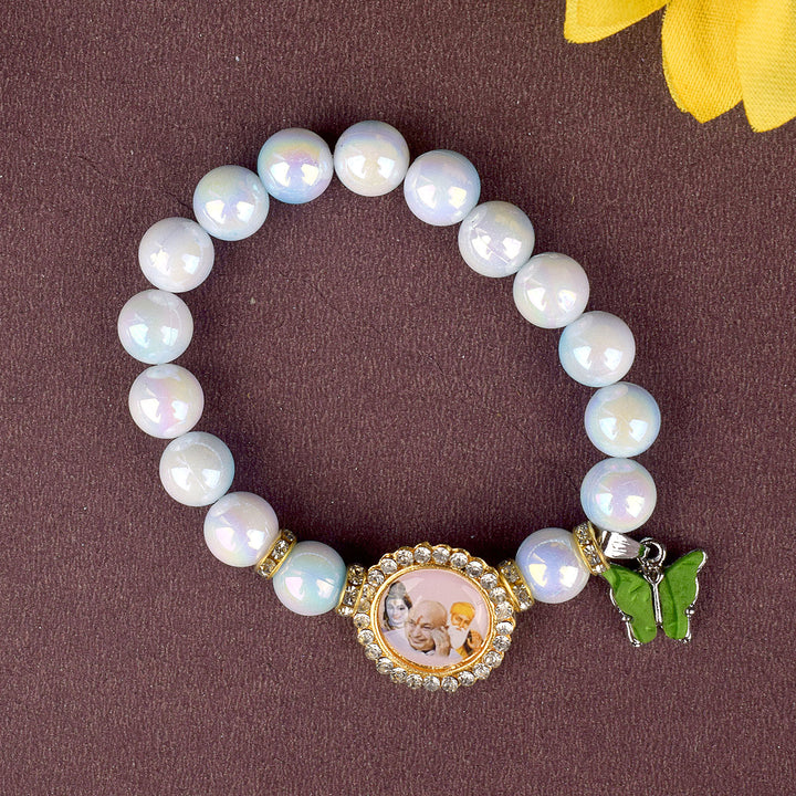 Butterfly Blue & White Shade Bracelet with Jai Guruji Swaroop Handmade Bracelets