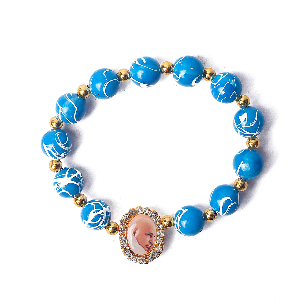 • Item Name: Dark Blue Round Pearl Bracelet with Jai Guruji Swaroop Handmade Bracelets for Men and Women