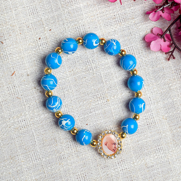 Our Guruji bracelet is a tangible symbol of divine connection. Crafted with care and reverence, it is designed to be worn close to your heart, serving as a constant reminder of Guruji's presence. The bracelet is adorned with sacred symbols and gemstones that hold spiritual significance, channeling positive energy and protection.