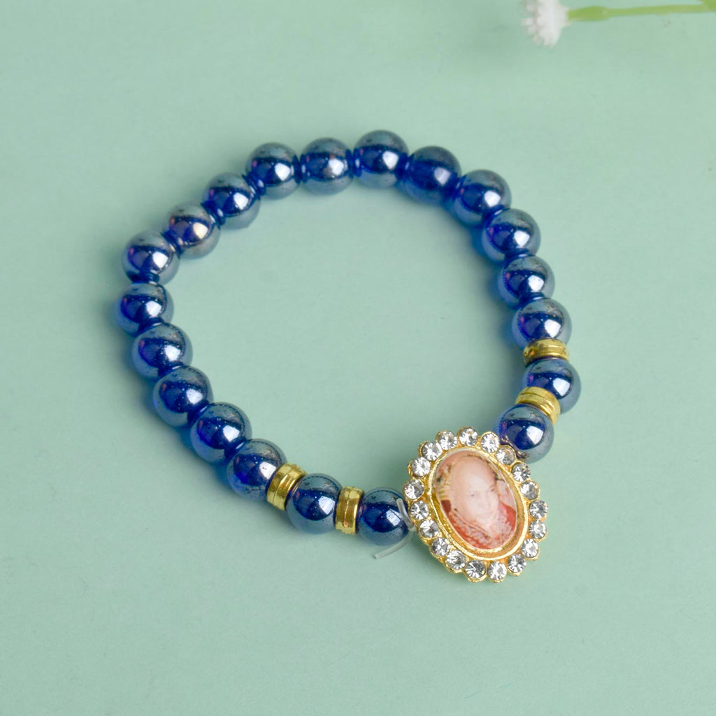 β€’ Item Name: Dark Blue Shiny Beads Single Layer Guruji Swaroop Bracelet