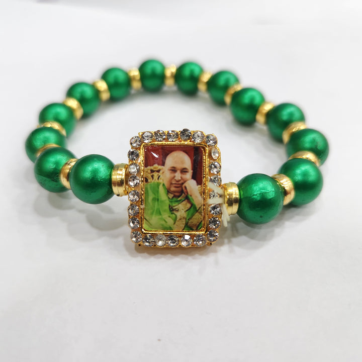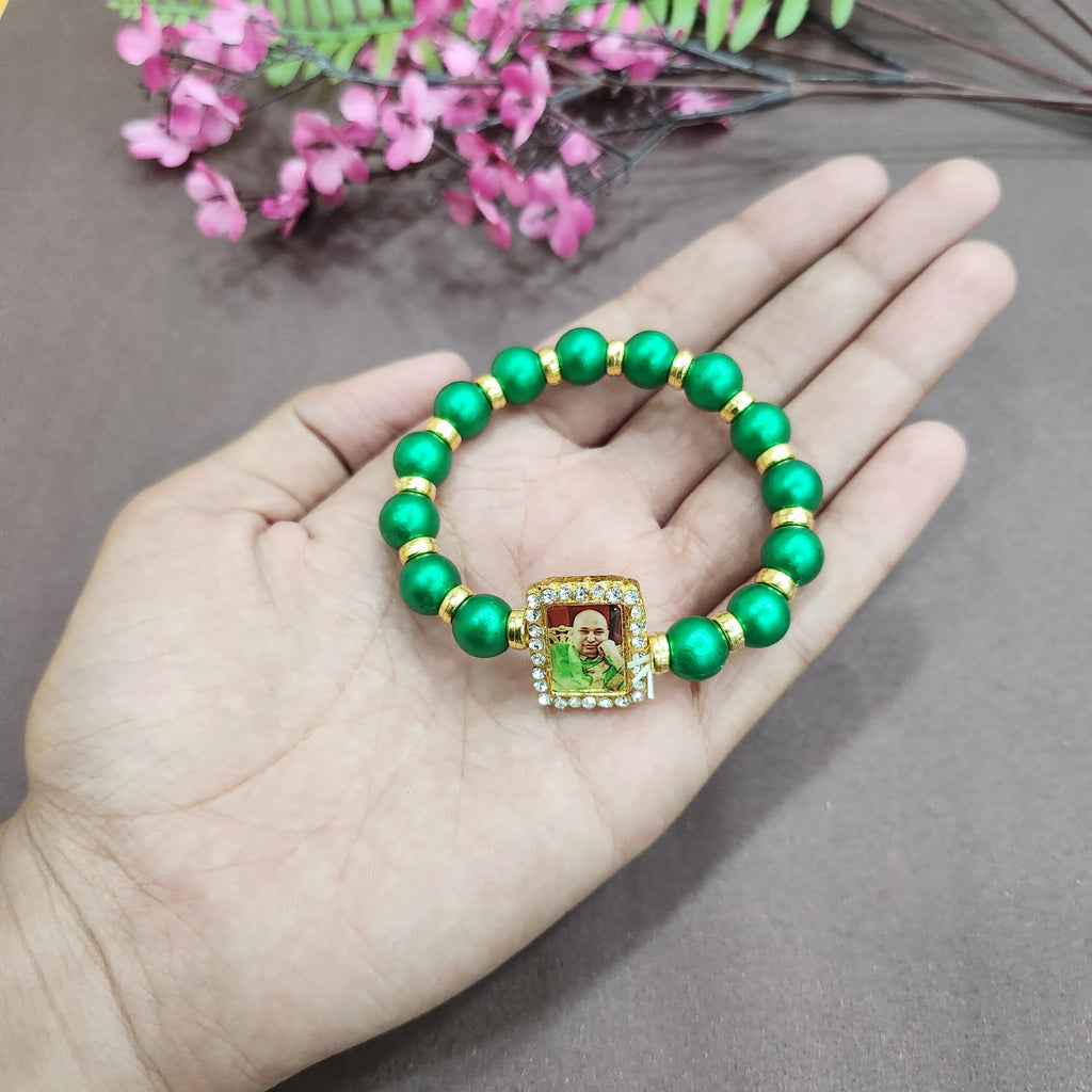 • Item Name: Dark Green Round Pearl Bracelet with Jai Guruji Swaroop Handmade Bracelets for Men and Women