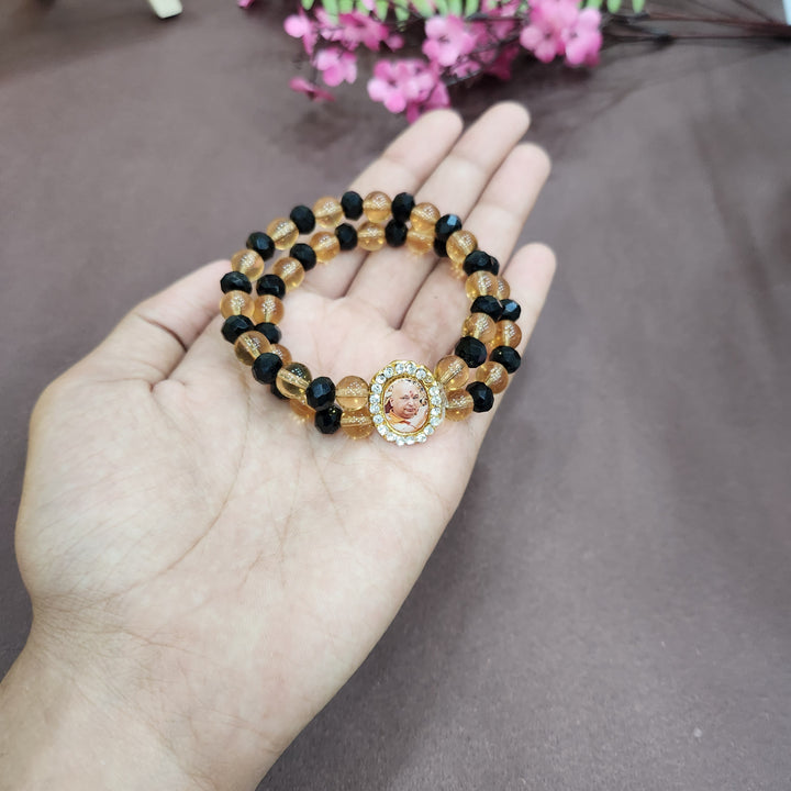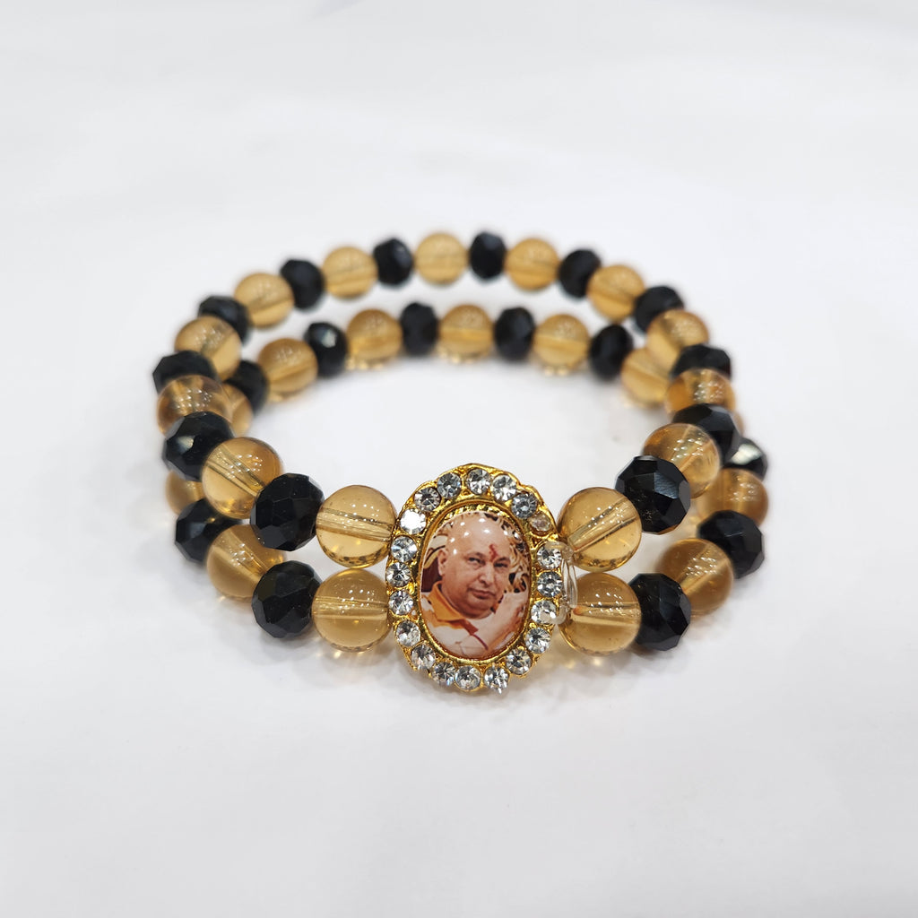 Our Guruji bracelet is a tangible symbol of divine connection. Crafted with care and reverence, it is designed to be worn close to your heart, serving as a constant reminder of Guruji's presence. The bracelet is adorned with sacred symbols and gemstones that hold spiritual significance, channeling positive energy and protection.