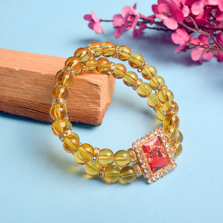 Our Guruji bracelet is a tangible symbol of divine connection. Crafted with care and reverence, it is designed to be worn close to your heart, serving as a constant reminder of Guruji's presence. The bracelet is adorned with sacred symbols and gemstones that hold spiritual significance, channeling positive energy and protection.
