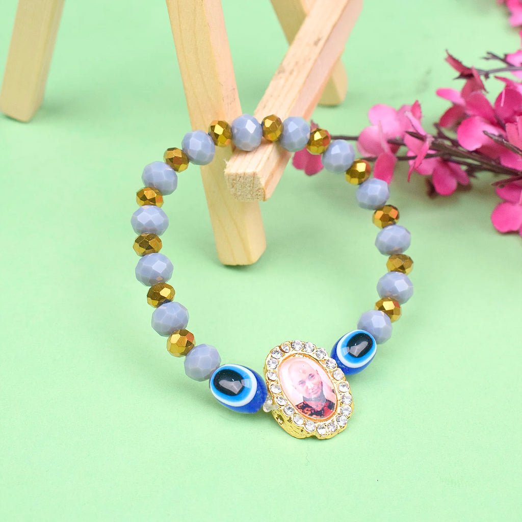 Lavender Evil Eye Beads Bracelet with Jai Guruji Swaroop Handmade Bracelets for Men and Women