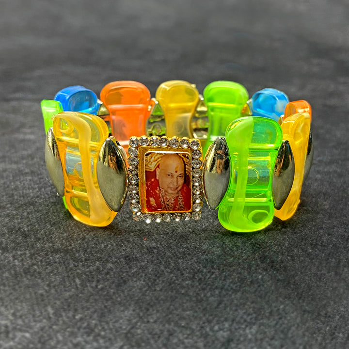 Our Guruji bracelet is a tangible symbol of divine connection. Crafted with care and reverence, it is designed to be worn close to your heart, serving as a constant reminder of Guruji's presence. The bracelet is adorned with sacred symbols and gemstones that hold spiritual significance, channeling positive energy and protection.