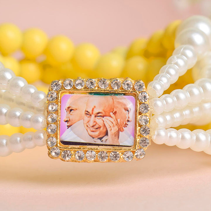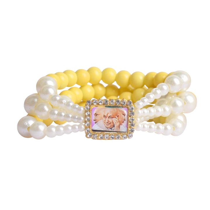 Buy Online | Pale Yellow White Pearl Guruji Swaroop Bracelet | satvikstore.in