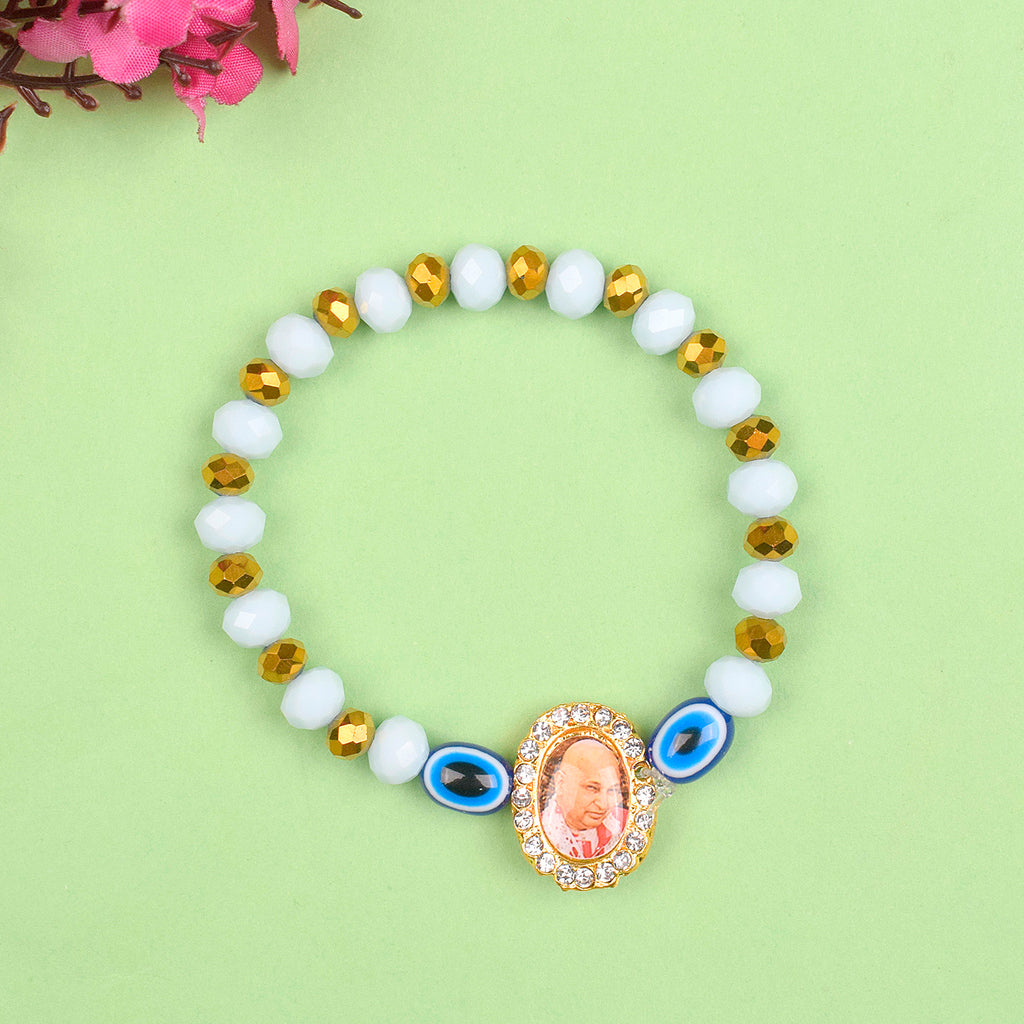 • Item Name: White Evil Eye Beads Bracelet with Jai Guruji Swaroop Handmade Bracelets for Men and Women