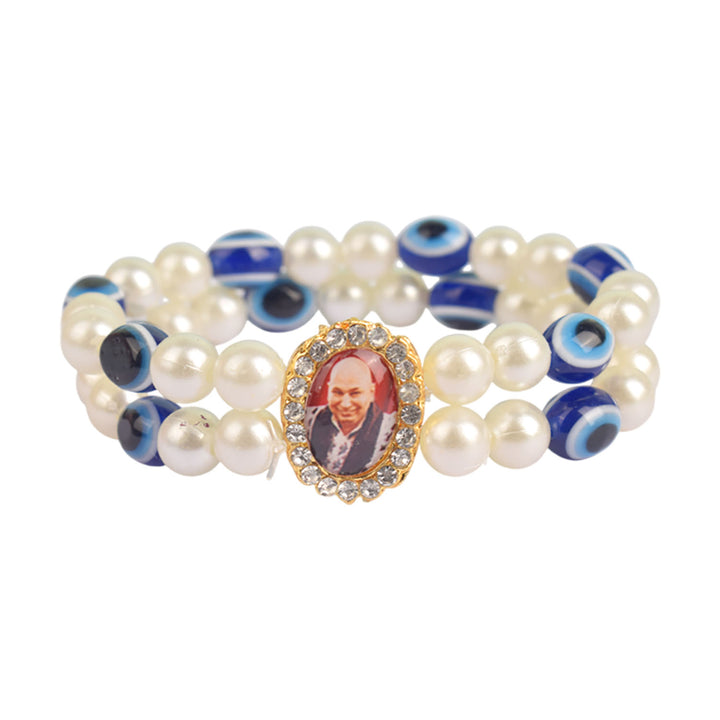 Buy Online | White Pearl Evil Eye Double Layer Guruji Swaroop Bracelet | satvikstore.in
