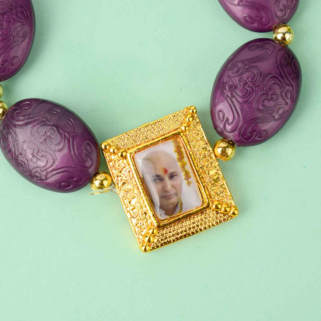 The Guruji neck mala is a sacred adornment that carries the energy of Guruji's blessings. Handmade with devotion, this mala comprises prayer beads and a Guruji pendant. When worn, it fosters a sense of inner peace and spiritual harmony, aiding in meditation and connecting you to Guruji's teachings.