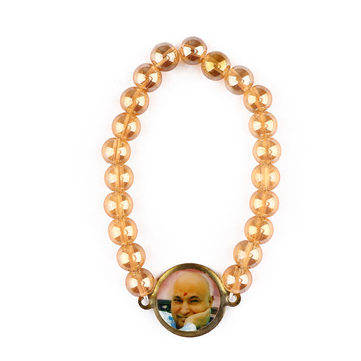 Glossy Golden Beads Bracelet with Jai Guruji Swaroop