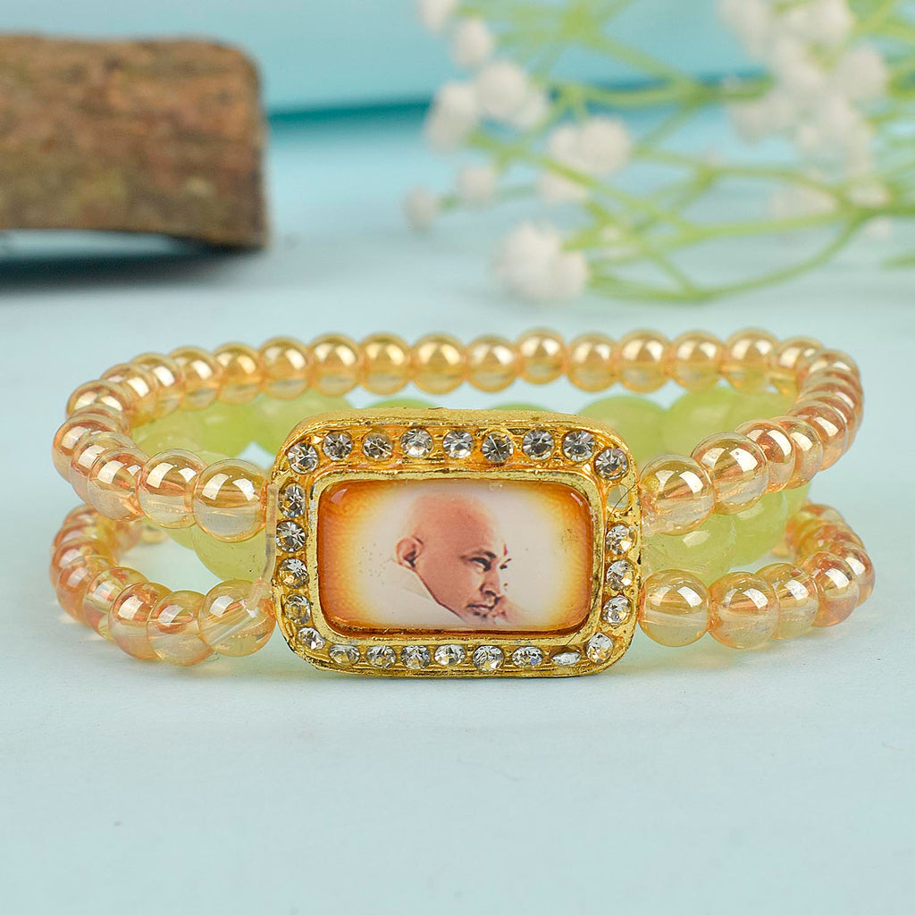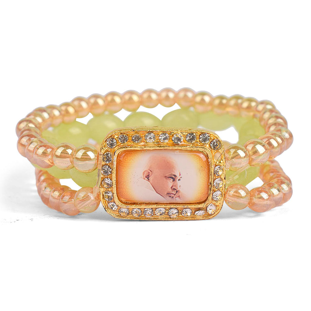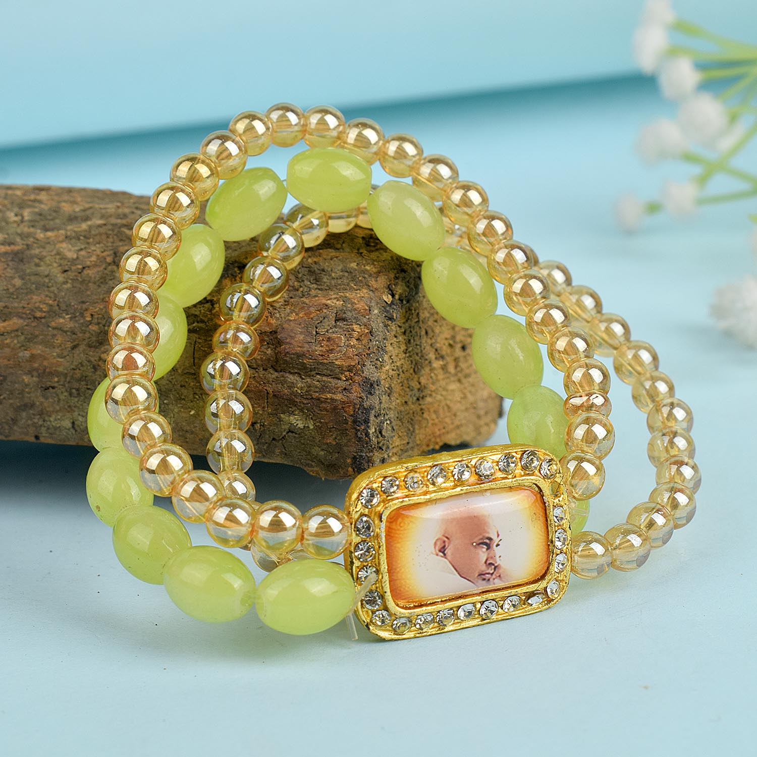 Buy Online | Golden Clear Green Triple Layer Guruji Swaroop Bracelet | satvikstore.in