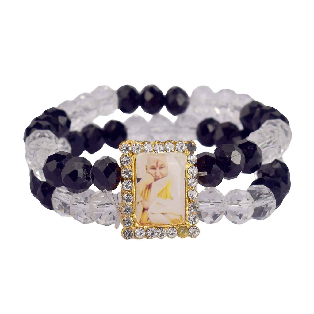 Item Name: Guruji Swaroop Bracelet (Clear & Black Beads)