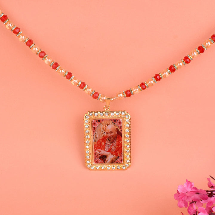 The Guruji neck mala is a sacred adornment that carries the energy of Guruji's blessings. Handmade with devotion, this mala comprises prayer beads and a Guruji pendant. When worn, it fosters a sense of inner peace and spiritual harmony, aiding in meditation and connecting you to Guruji's teachings.