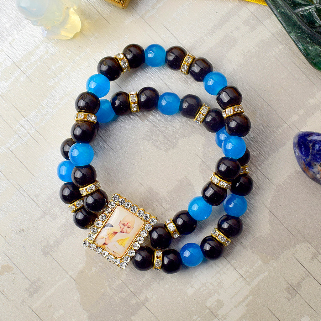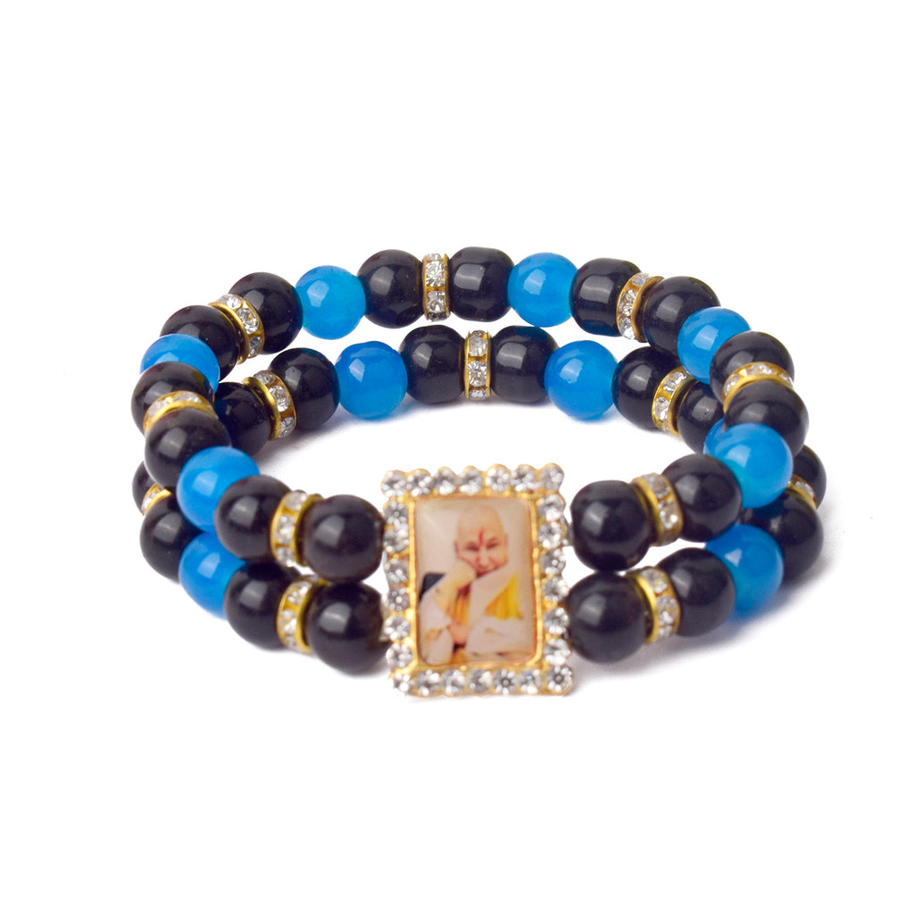 Our Guruji bracelet is a tangible symbol of divine connection. Crafted with care and reverence, it is designed to be worn close to your heart, serving as a constant reminder of Guruji's presence. The bracelet is adorned with sacred symbols and gemstones that hold spiritual significance, channeling positive energy and protection.