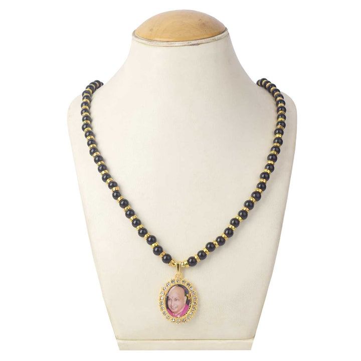 β€’ Material: Premium Black and Golden Prayer Beads with Guruji Swaroop Locket