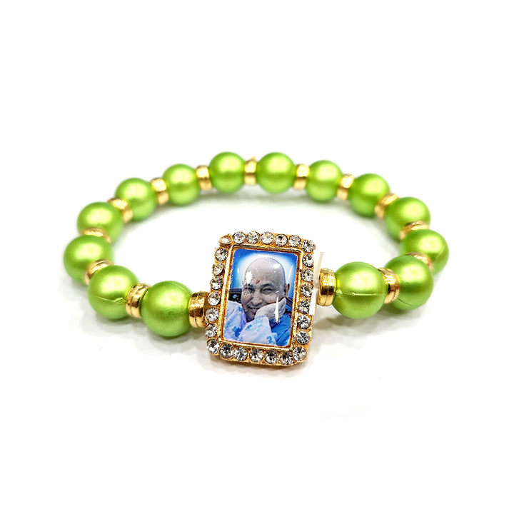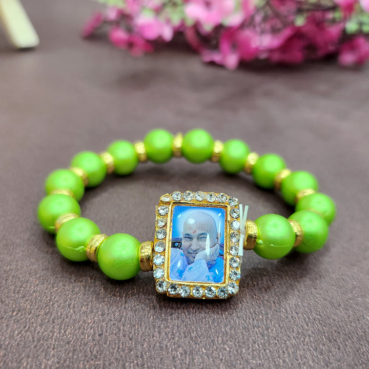 Jai Guruji Swaroop Lime Green Round Pearl Bracelet | Satvikstore.in – satvikstore.in