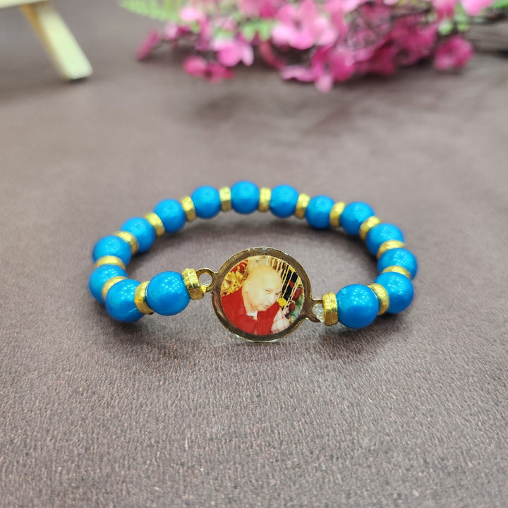 • Item Name: Pearl Bracelet with Jai Guruji Swaroop Handmade Bracelets for Men and Women