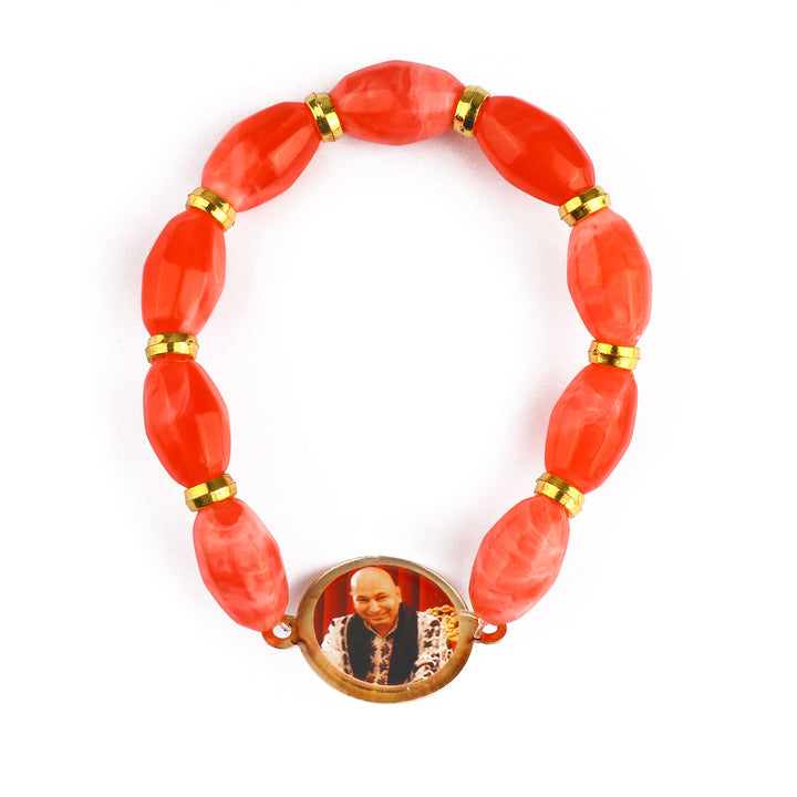 Ravishing Red Long Beads Bracelet with Jai Guruji Swaroop