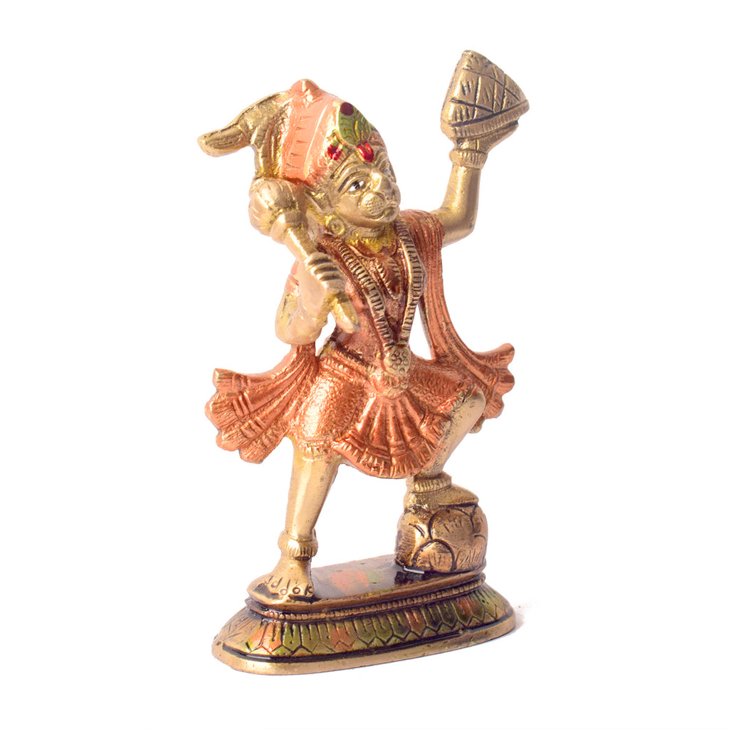 Colored Brass Hanuman Idol | Sanjivani Hanuman Idol | Brass Hanuman Idol for Home Temple | Premium Brass Idols for Sale | Handmade Brass Hanuman Idol | Antique Finish Standing Hanuman Statue | Exclusive Brass Idol | Brass Idol |Β