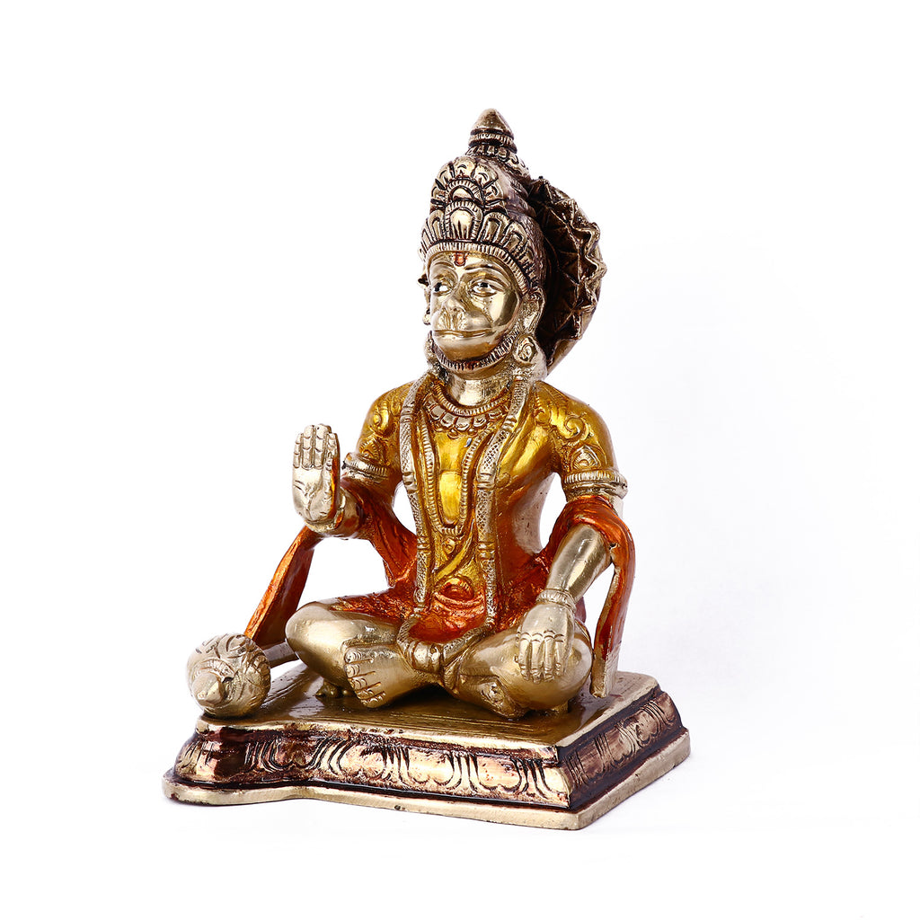 Brass Hanuman Idol | Lord Hanuman Idol for Temple | Puja Room Decor | Brass Bajrangbali Idol | Antique Finish Brass Hanuman Idol | Brass Sitting Hanuman Statue | Handmade Brass Idol |