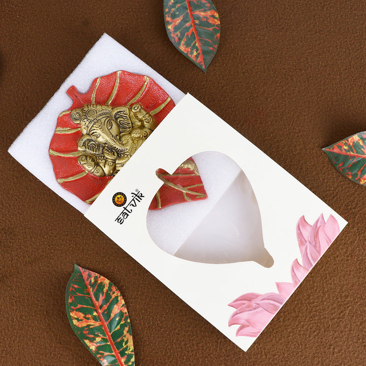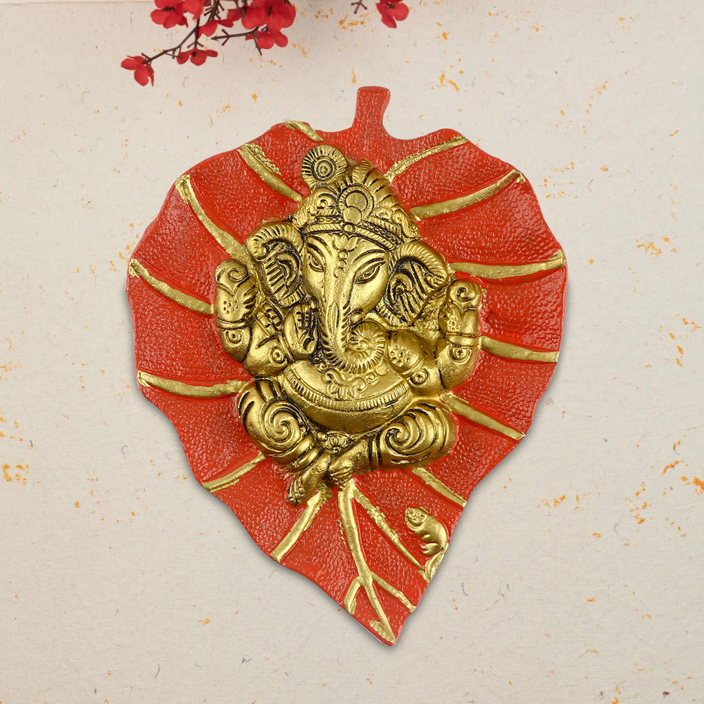 Buy Lord Ganesh on Leaf Patta Wall Hanging Red | Satvikstore.in – satvikstore.in