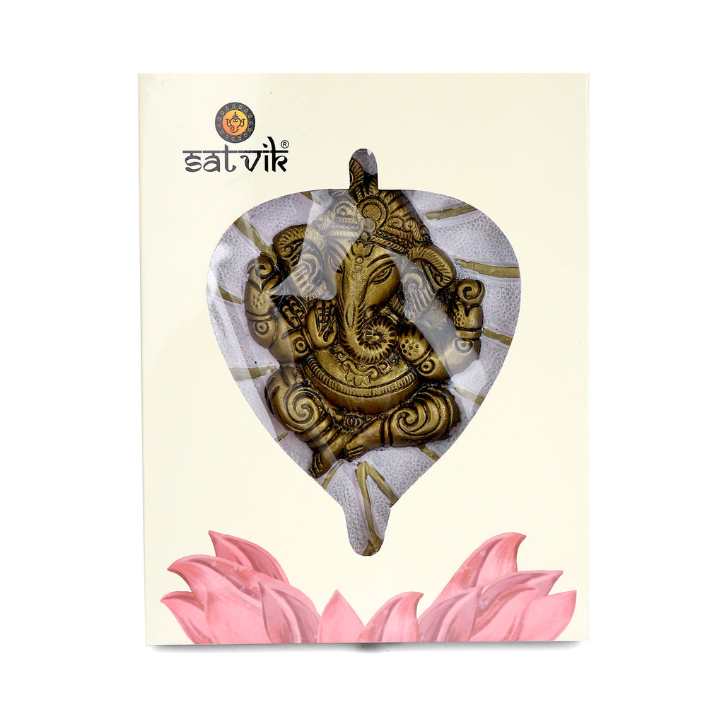 About Product: Satvik Presents Designer Lord Ganesha On Leaf which is ideal for wall Hanging Decor for homes, offices, and Mandir. This Ganpati Sculpture has detailed work and it is made up of Premium Quality Material, Comes with Premium Gift Packing. Ganesha is a Symbol of the God of Success, Patron Of Music, Remover of Obstacles, and many other aspects. The Ganesha with a peepal leaf at the back is known as the most suitable Ganesha posture that ensures good luck and prosperity.