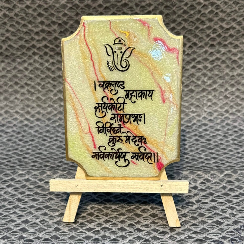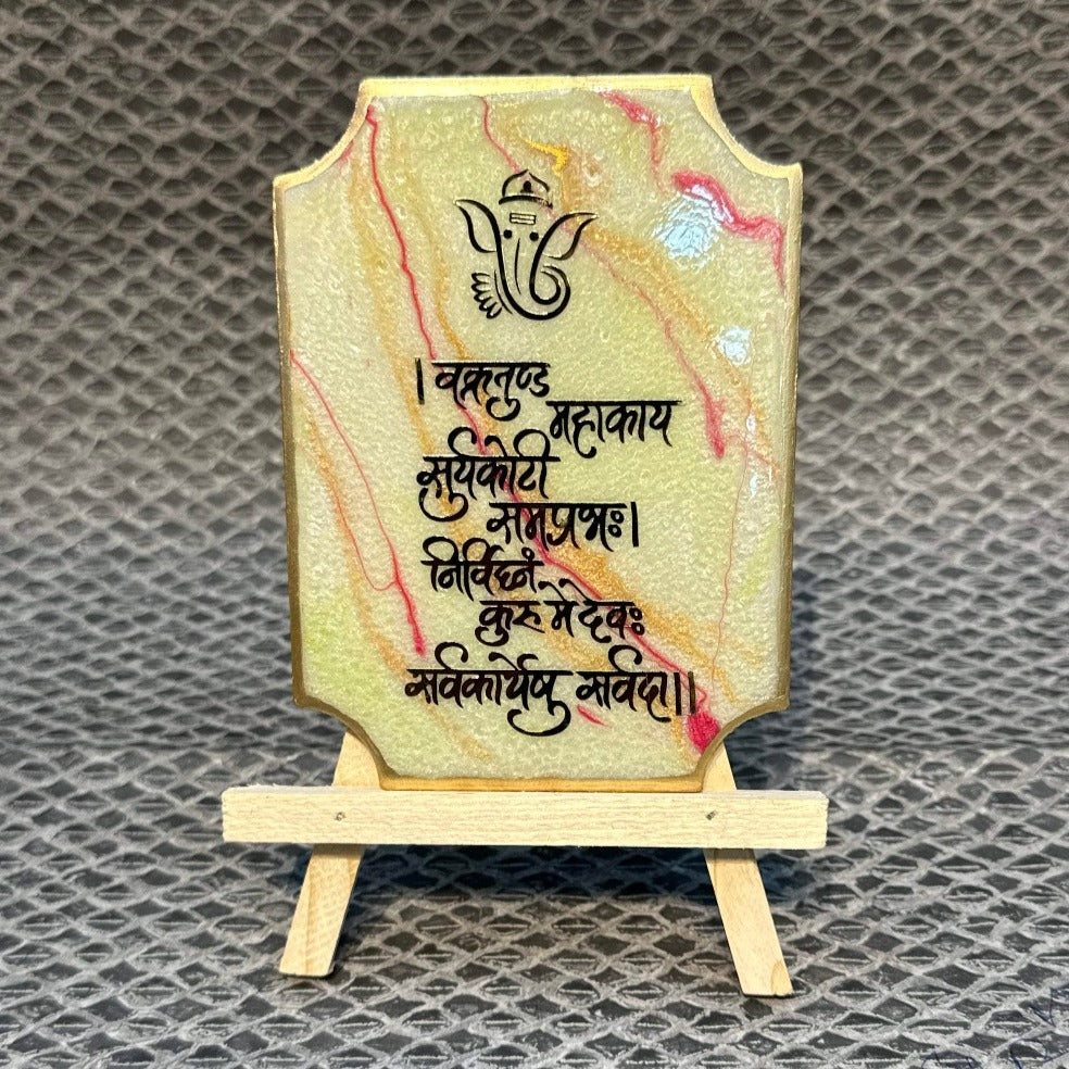 Decorative Ganesha Mantra Frame With Stand Made With Epoxy (Green)
