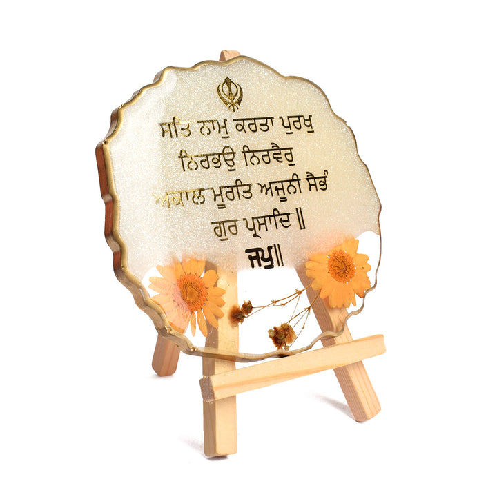 Ik Onkar mantra frame | Epoxy Ik Onkar decor | White frame mantra display | Sacred Ik Onkar wall decor | Spiritual epoxy frame | Mantra with stand | Sikh spiritual decor | Epoxy resin Ik Onkar |