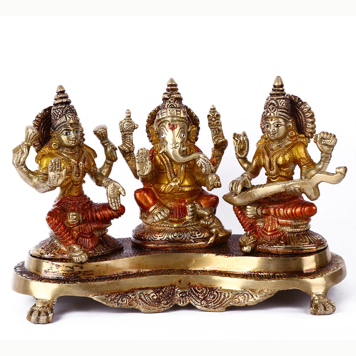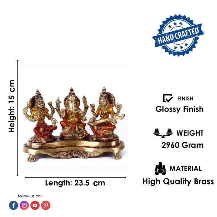 About Product: Decorative Beautifully Engraved Lakshmi Ganesh With Sarasvati Idol Statue to protect you from all negative energy, is a symbol of Purity, knowledge, success and Prosperity.