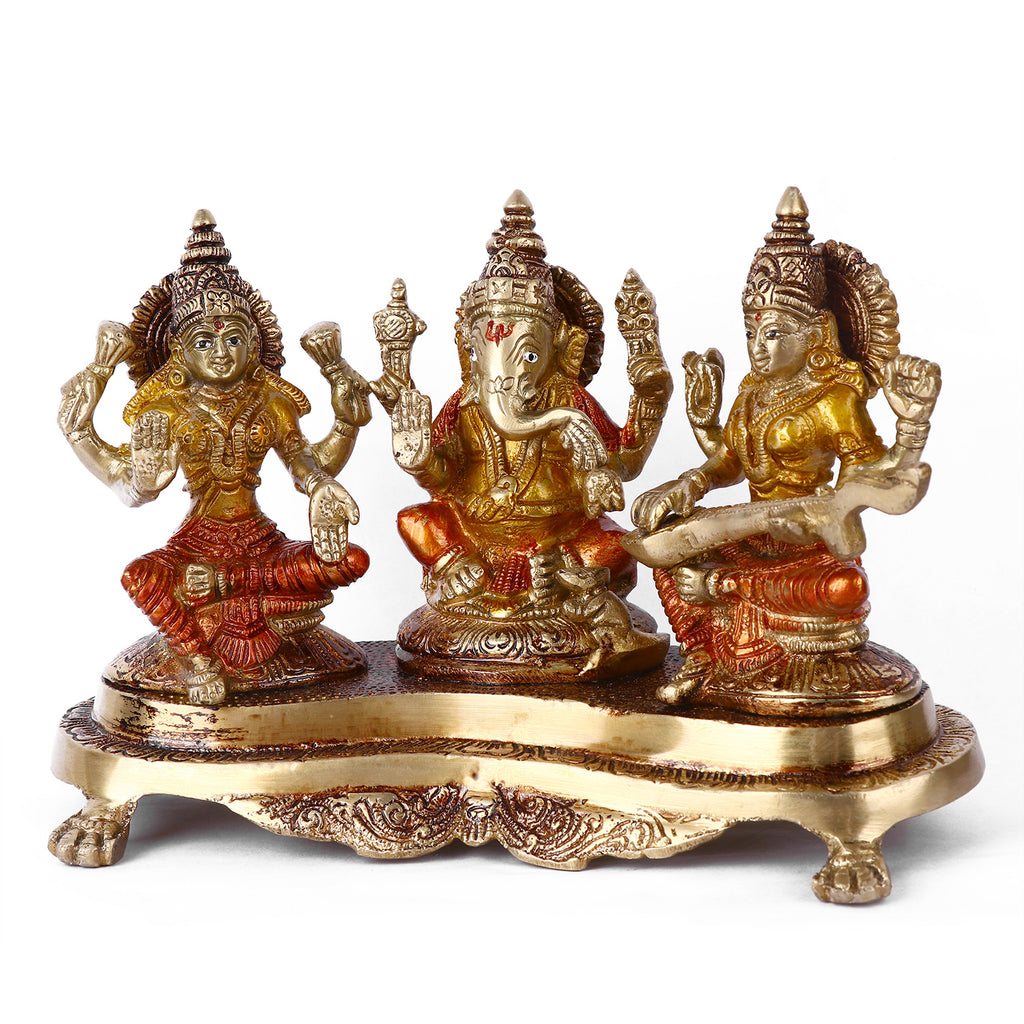 Brass Lakshmi Ganesh With Saraswati Idol | Buy Online | Satvikstore.in – satvikstore.in