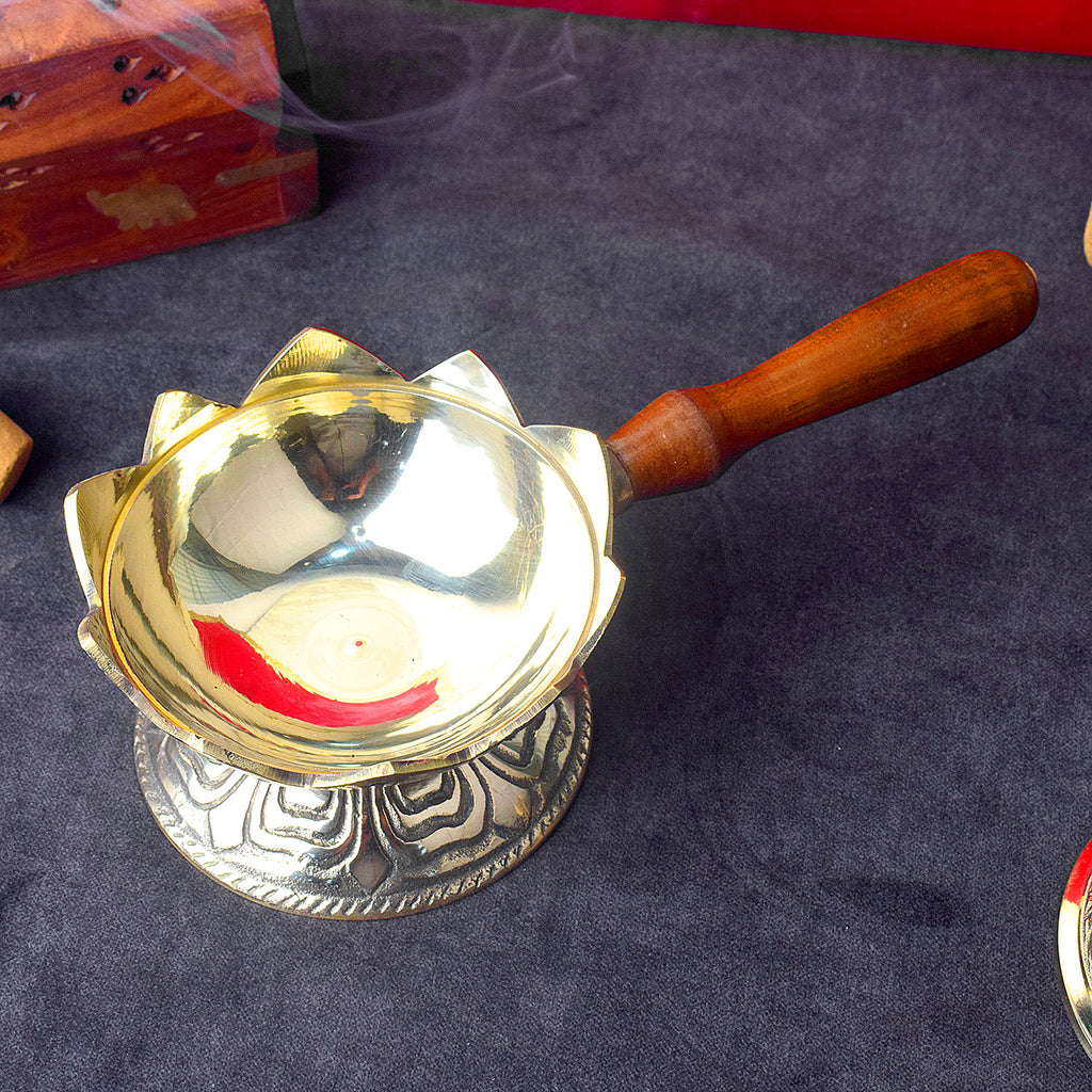 Antique Brass Loban Dingali with Wooden Handle for Pooja and Rituals – satvikstore.in