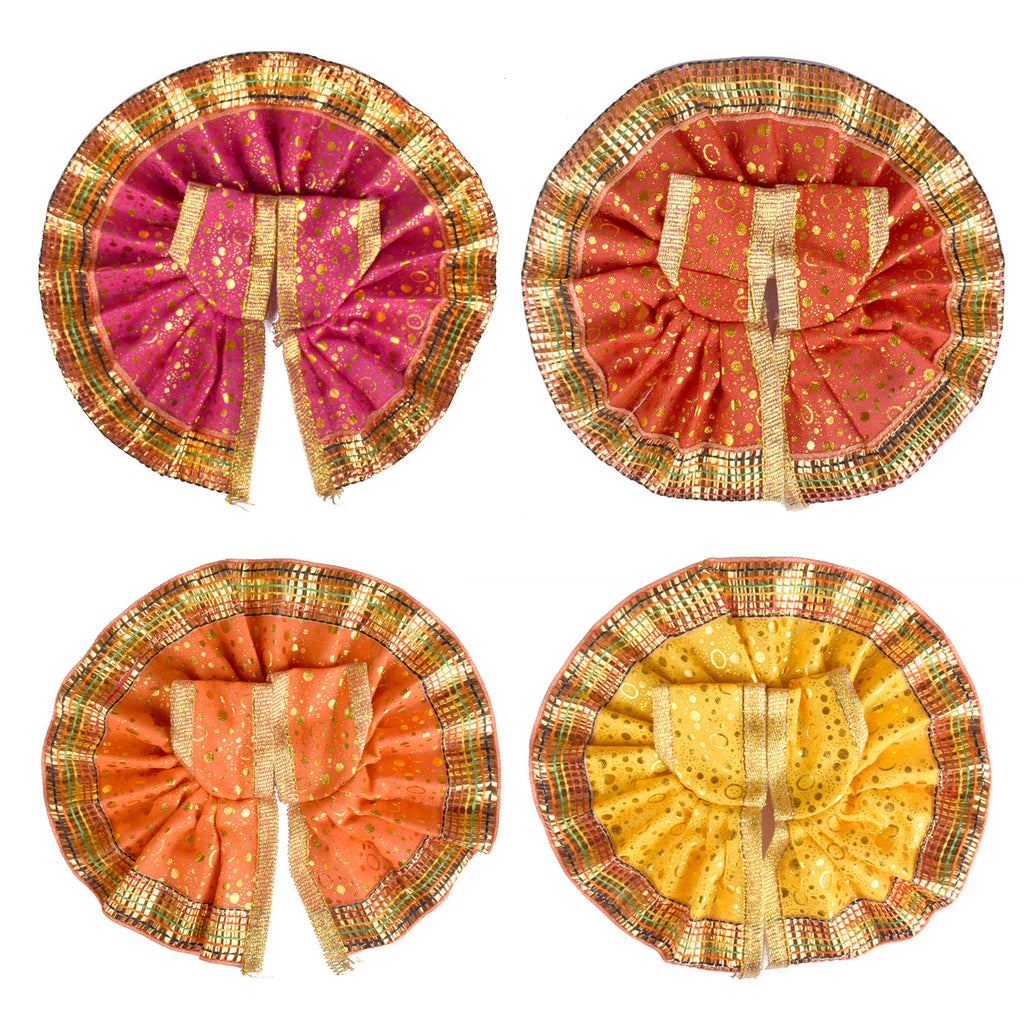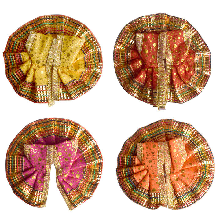 dotted laddu gopal dress | golden border krishna poshak | pink yellow red orange gopal dress | playful deity attire | vibrant laddu gopal clothes | festive pooja outfit | traditional bal gopal vastra | krishna ji dress online | dotted kanha ji dress | divine laddu gopal poshak | satvikstore.in