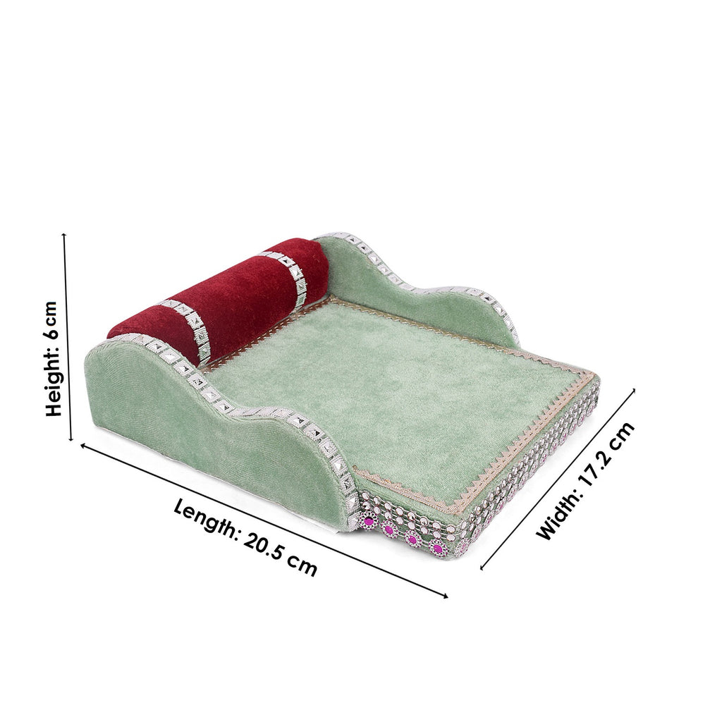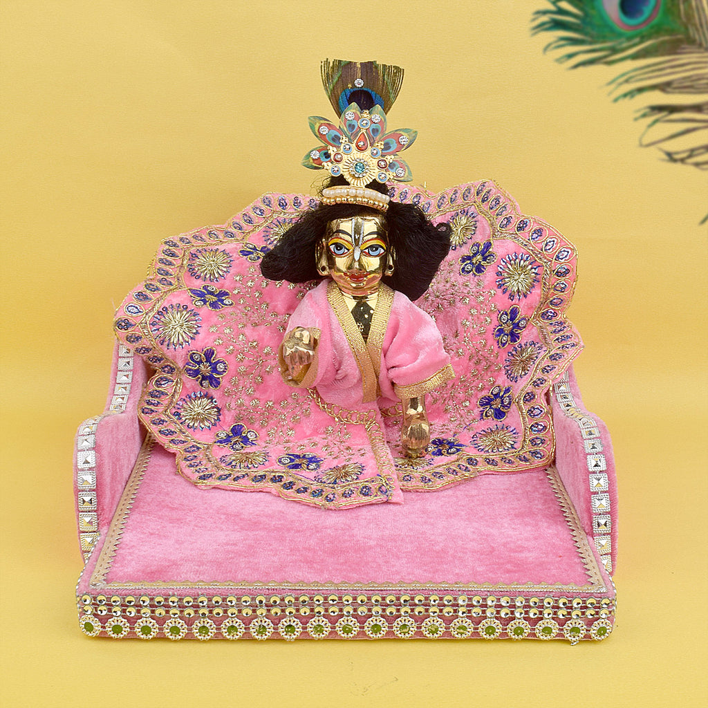 As you place your Laddu Gopal on this sacred throne, watch as the velvet embraces the little lord, showering blessings and grace upon your home. Its charming allure and captivating design make it a true centerpiece of devotion, adding a touch of splendor to your worship space.