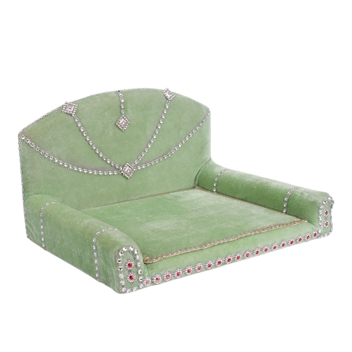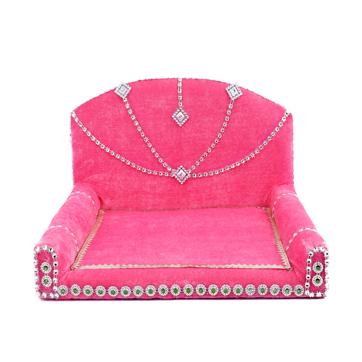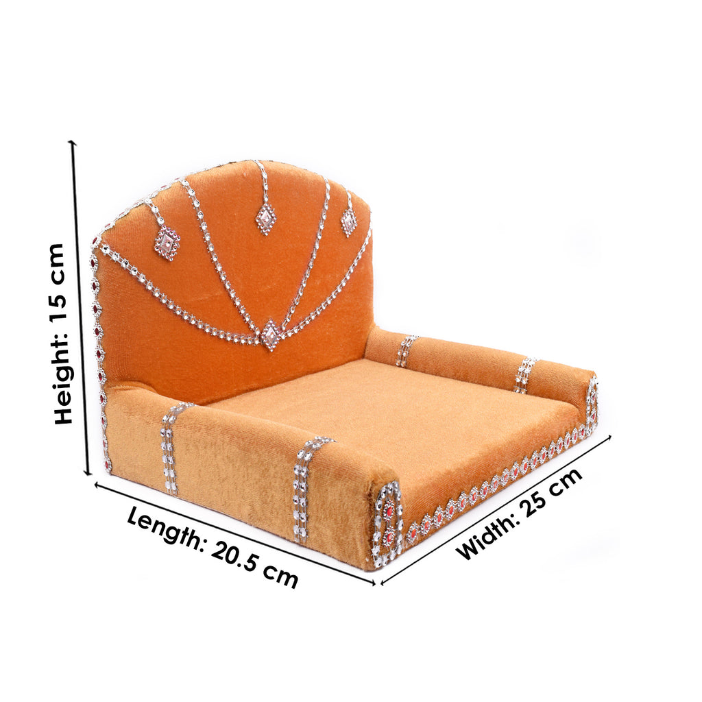 As you place your Laddu Gopal on this sacred throne, watch as the velvet embraces the little lord, showering blessings and grace upon your home. Its charming allure and captivating design make it a true centerpiece of devotion, adding a touch of splendor to your worship space.