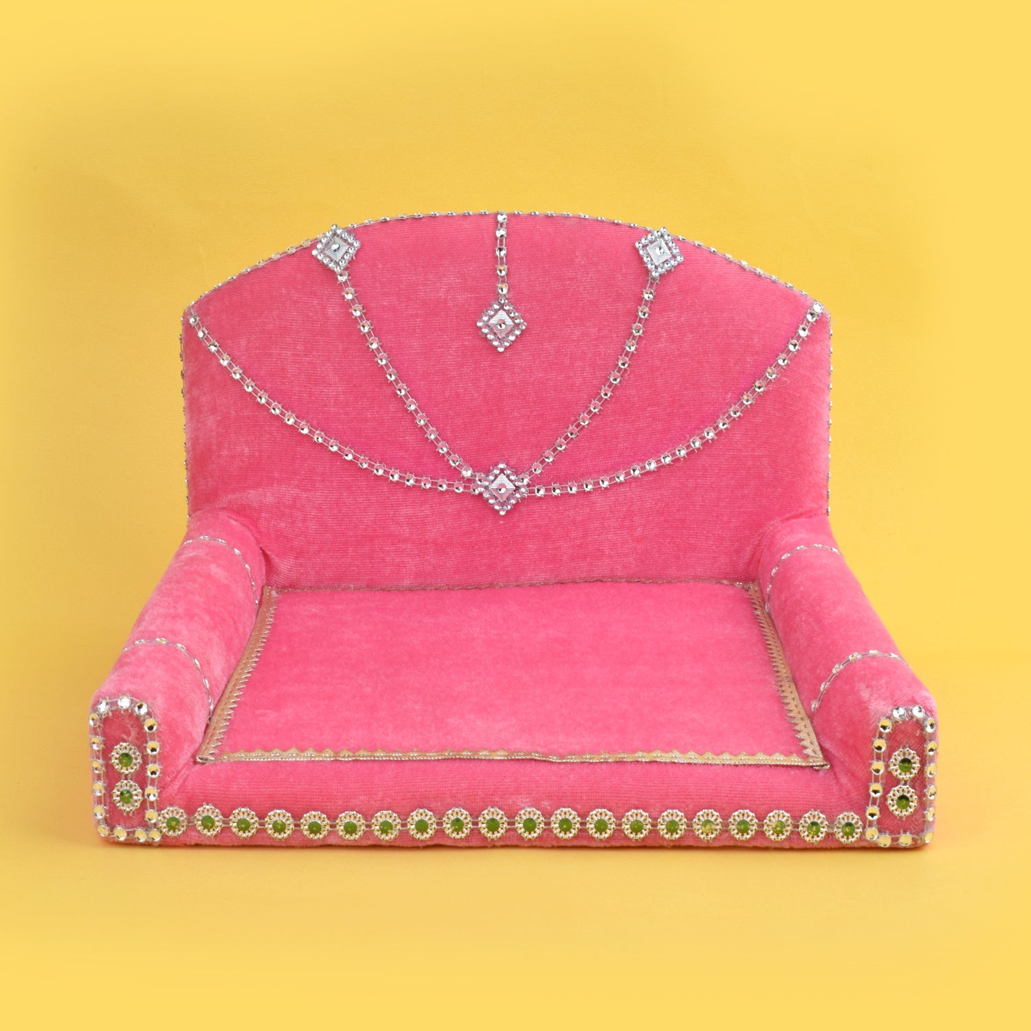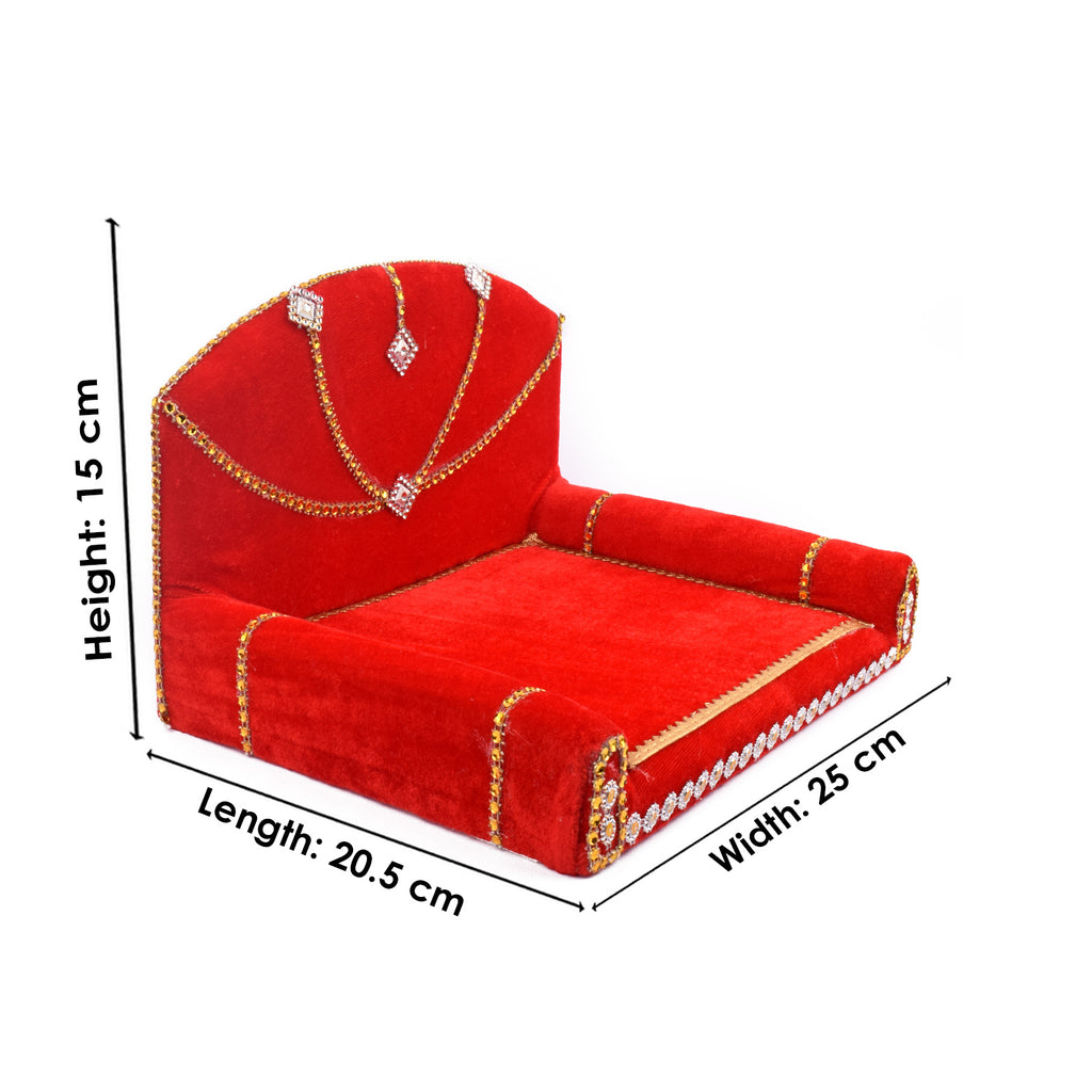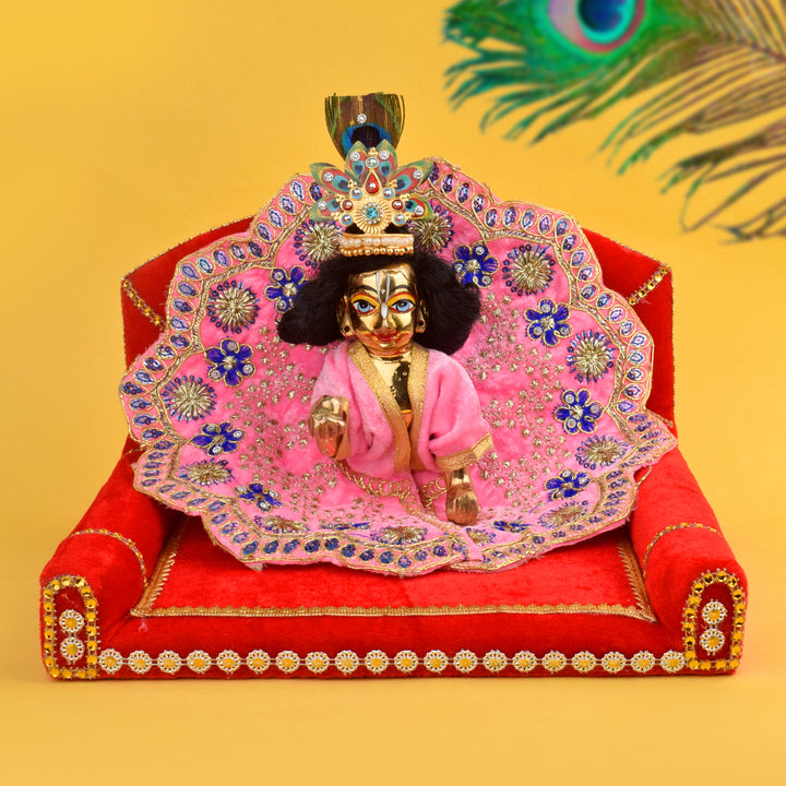 laddu gopal velvet singhasan | sacred singhasan for krishna | kanha ji pooja seat | traditional velvet singhasan | red velvet singhasan | pink krishna throne | yellow kanha ji seat | green velvet deity singhasan | large krishna throne | bal gopal pooja accessories | handmade velvet pooja furniture