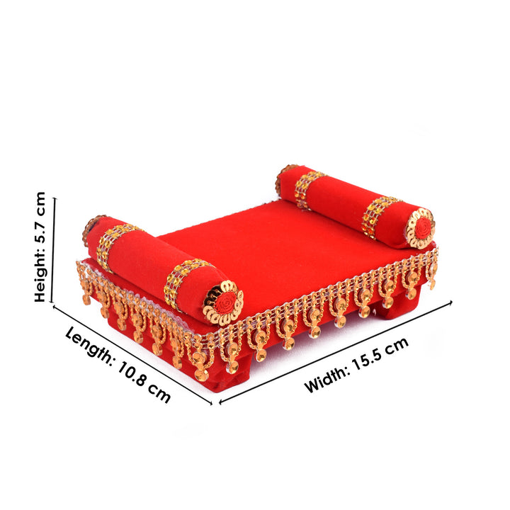 velvet laddu gopal singhasan | royal deity throne | krishna singhasan velvet | bal gopal seat for mandir | traditional gopal singhasan | red velvet throne for laddu gopal | pooja accessories for kanha ji | raj singhasan for krishna | satvikstore divine decor