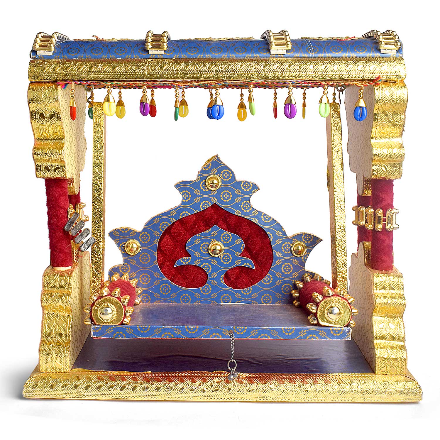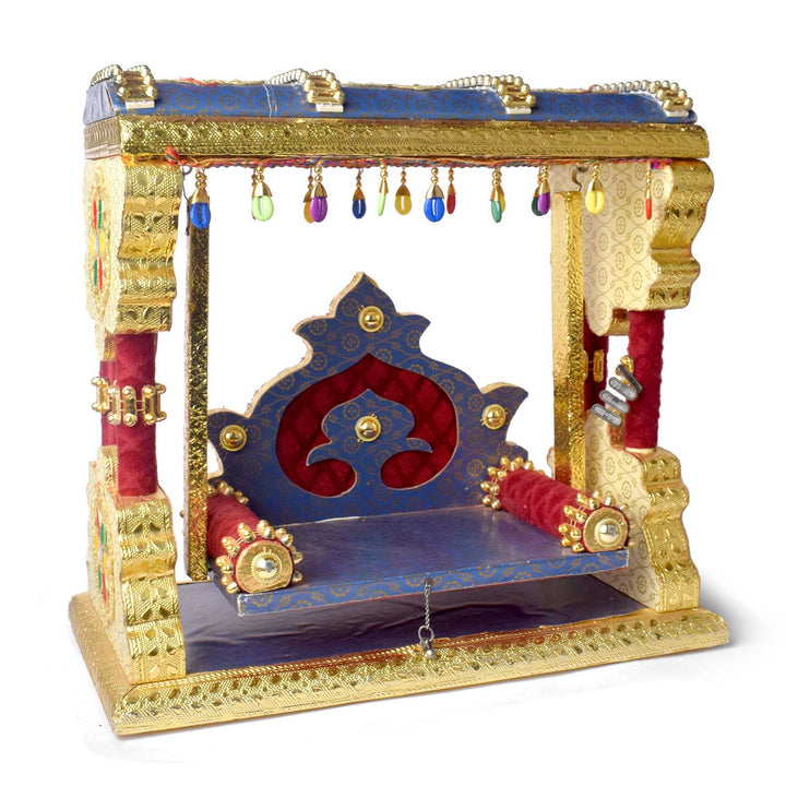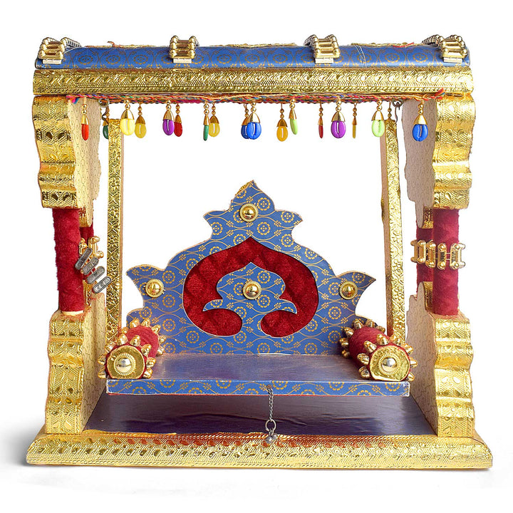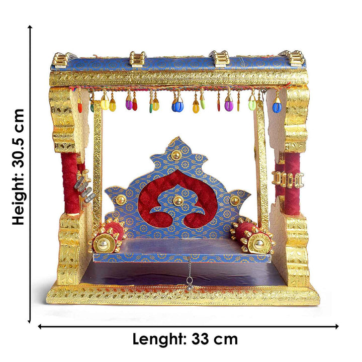 Item Name: Royal Blue Wooden & Metal Singhasan Jhula for Laddu Gopal