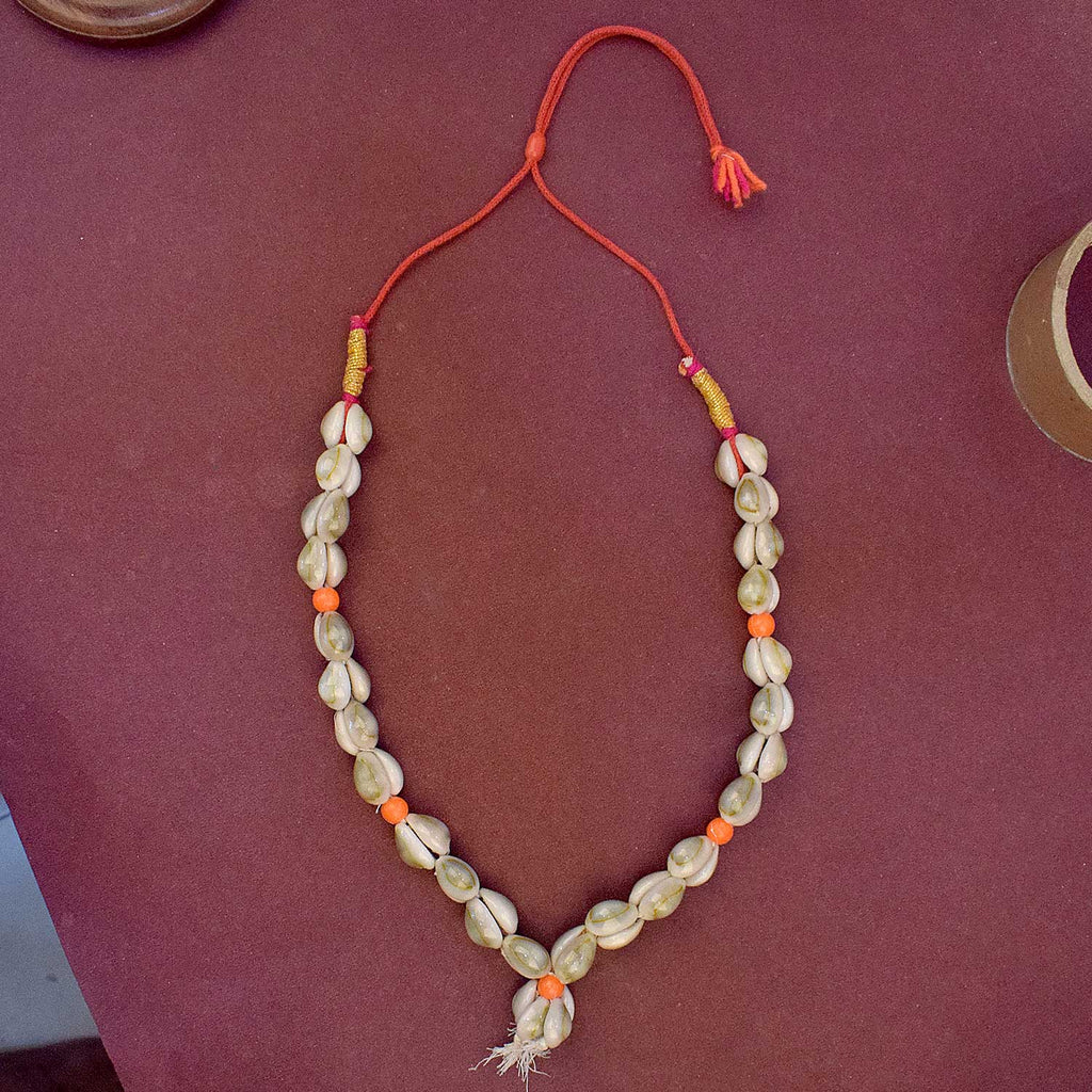 kodi mala necklace | natural kodi beads | spiritual prayer mala | meditation mala | japa mala kodi | pooja mala | spiritual jewelry | healing beads | divine protection mala | positive energy mala | satvikstore mala | kauri shell mala | cowrie shell mala | traditional mala