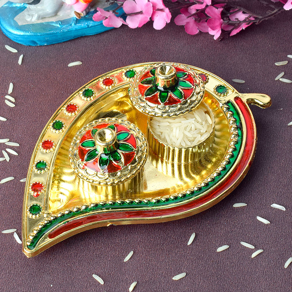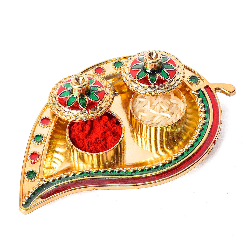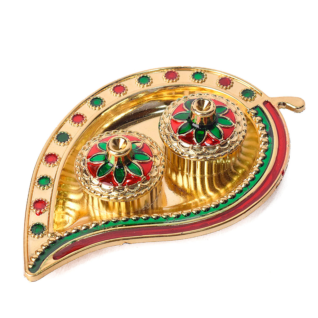 Shop Now | Leaf-Inspired Kumkum Holder with Precision | Satvikstore.in – satvikstore.in