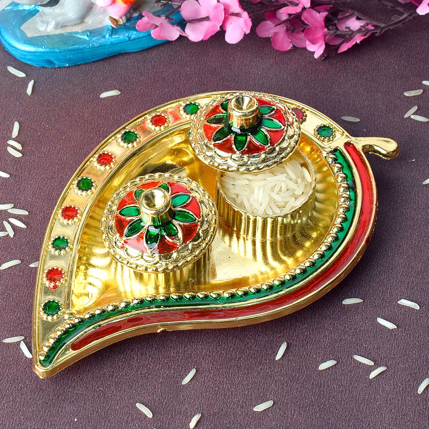 • Item Name: Leaf-Inspired Kumkum Holder with Precision