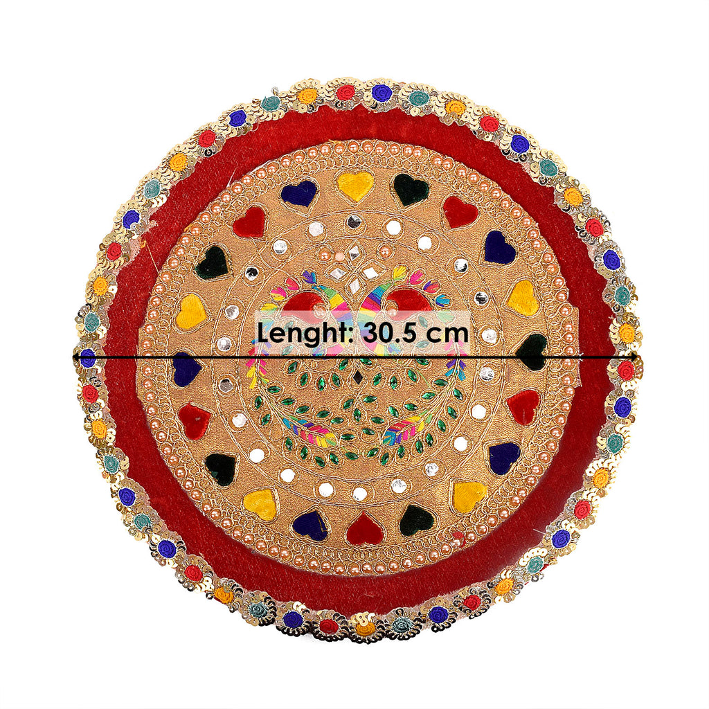 Item Name: Handcrafted Red and Gold  Karwa Chauth Thali Set-3pc